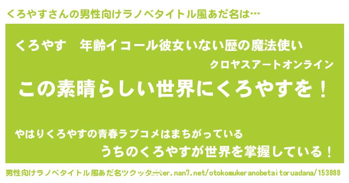 | 意味不明あだ名 | 『住所不定無職くろやす(39歳)』 |