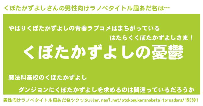 | 女子向けラノベタイトル風あだ名 | 『くぼたかずよし姫と円卓の騎士』 |