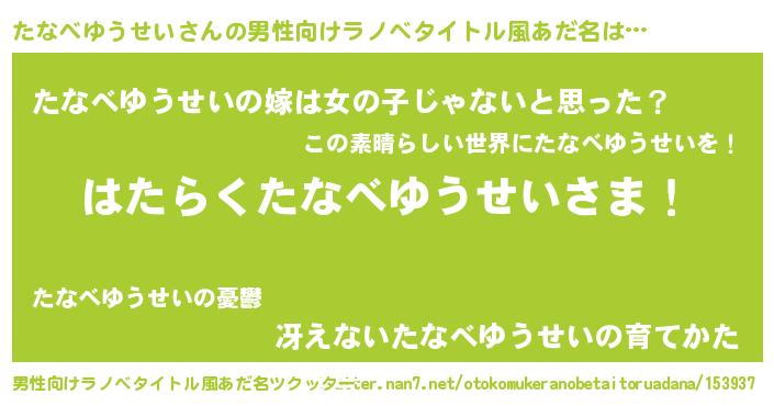 | 意味不明あだ名 | 『とにかく怪しいたなべゆうせい』 |