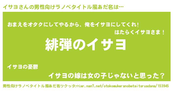 | 欧米人風あだ名 | 『イサヨ・ステッグマイヤー』 |