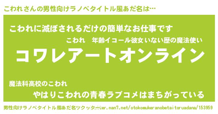 | 胡散臭い通販商品みたいなあだ名 | 『億万長者になれる霊験あらたかなお札…その名も「こわれ」』 |