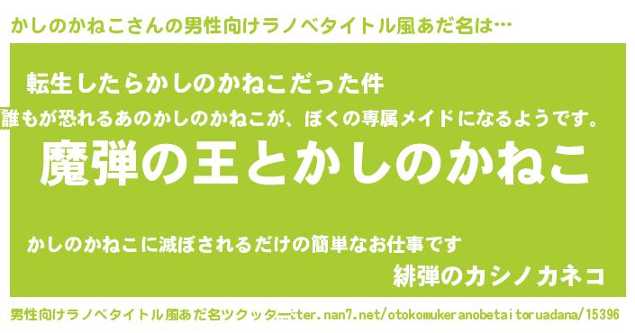 | 意味不明あだ名 | 『住所不定無職かしのかねこ(74歳)』 |