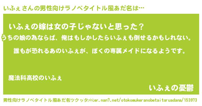 | ヘコむあだ名 | 『いふぇ(笑)』『いふを』『牛乳』 |