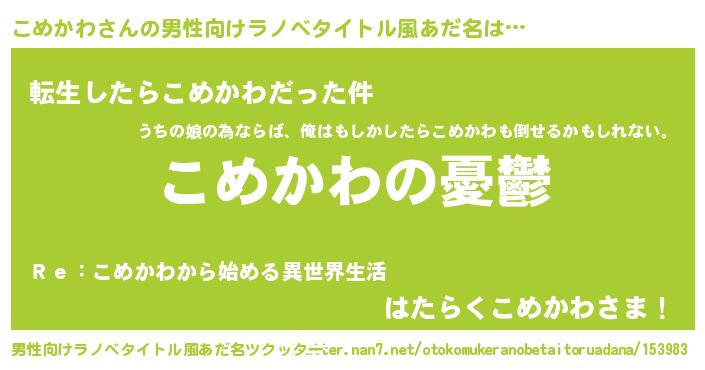 | 意味不明あだ名 | 『ペロリンこめかわ』『自称こめかわ』 |