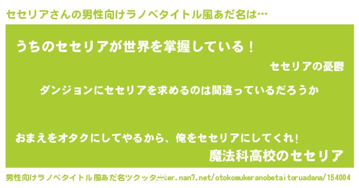 | 胡散臭い通販商品みたいなあだ名 | 『伝統あるサプリメント…その名も「セセリア」』 |