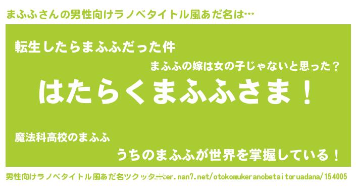 | 胡散臭い通販商品みたいなあだ名 | 『信頼と実績のペンダント…その名も「まふふ」』 |