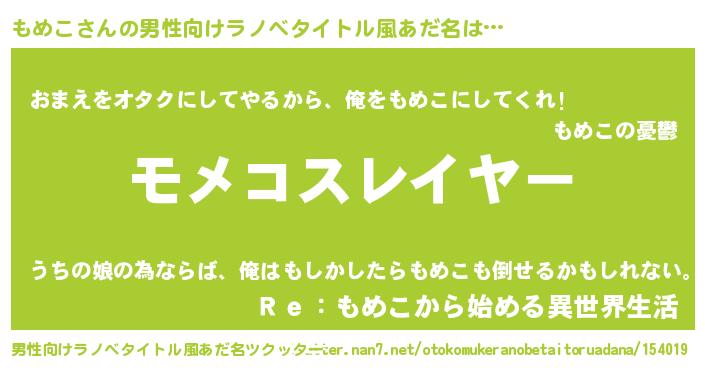 | ヒーロー風カッコイイあだ名 | 『友情の使者もめこ』『超時空戦士モメコ』 |