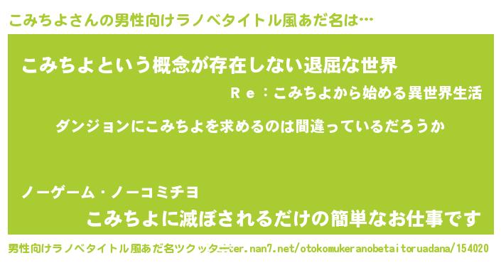 | 女子向けラノベタイトル風あだ名 | 『こみちよは平凡を望む』 |