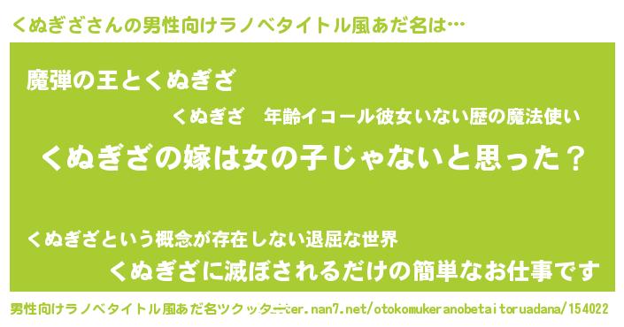| 意味不明あだ名 | 『とにかく怪しいくぬぎざ』 |