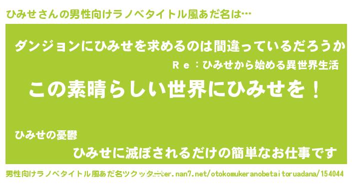 | 胡散臭い通販商品みたいなあだ名 | 『あなたにだけ特別に提供する100年もののヴィンテージワイン…その名も「ひみせ」』 |