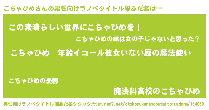 | 女子向けラノベタイトル風あだ名 | 『こちゃひめの玉の輿計画!』 |