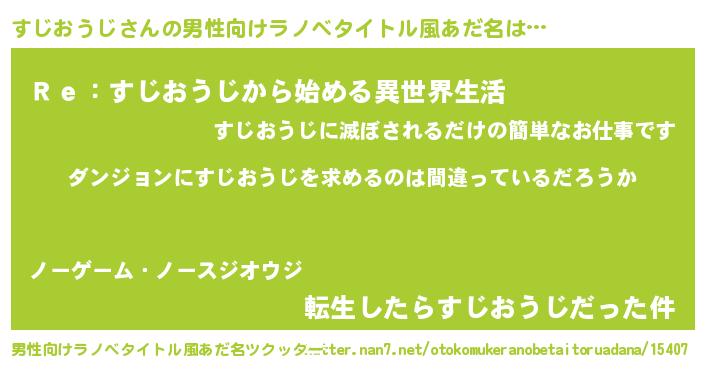 | 胡散臭い通販商品みたいなあだ名 | 『信頼と実績のペンダント…その名も「すじおうじ」』 |