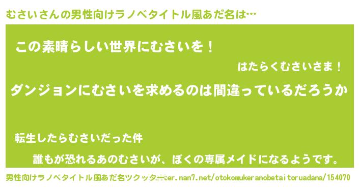 | 女子向けラノベタイトル風あだ名 | 『むさいは平凡を望む』 |