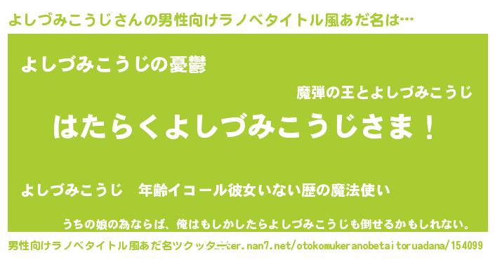 | 胡散臭い通販商品みたいなあだ名 | 『モテモテ間違いなし水晶球…その名も「よしづみこうじ」』 |