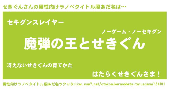 | ヒーロー風カッコイイあだ名 | 『仮面セキダー』『正義の使者せきぐん』 |