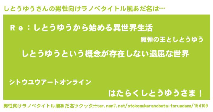 | 胡散臭い通販商品みたいなあだ名 | 『絶対に幸福をもたらす健康食品…その名も「しとうゆう」』 |