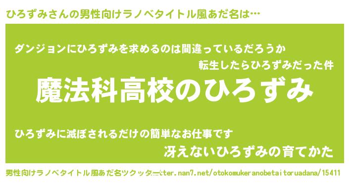 | ヒーロー風カッコイイあだ名 | 『サイバー戦士ヒロズミ』『銀牙騎士ヒロ』 |
