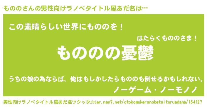 | 女子向けラノベタイトル風あだ名 | 『ものの姫と円卓の騎士』『ものの恋絵巻』 |