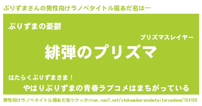 | 意味不明あだ名 | 『ペロリンぷりずま』『自称ぷりずま』 |