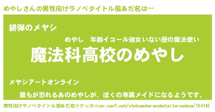 | 伝説のあだ名 | 『古より伝わる吟遊詩人めやし』 |