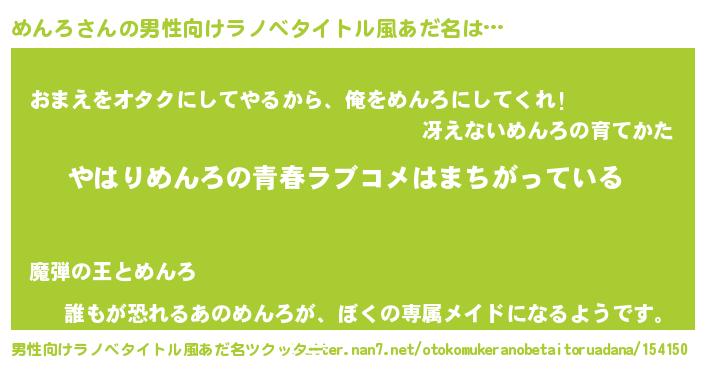 | 意味不明あだ名 | 『めんろフォーエバー』『永久保存めんろ』 |