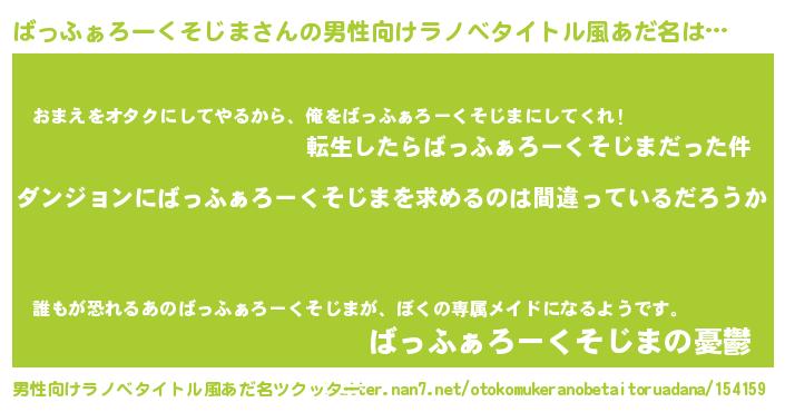 | 女子向けラノベタイトル風あだ名 | 『ばっふぁろーくそじまの卵を拾いまして』 |
