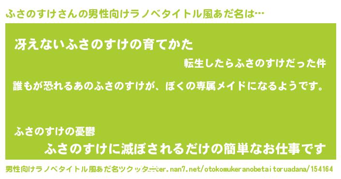 | 女子向けラノベタイトル風あだ名 | 『異世界でカフェふさのすけを開店しました。』 |
