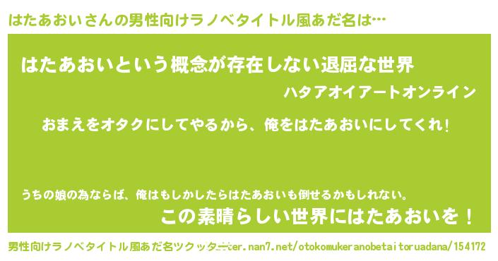 | 女子向けラノベタイトル風あだ名 | 『はたあおい夫妻のなれそめ』 |
