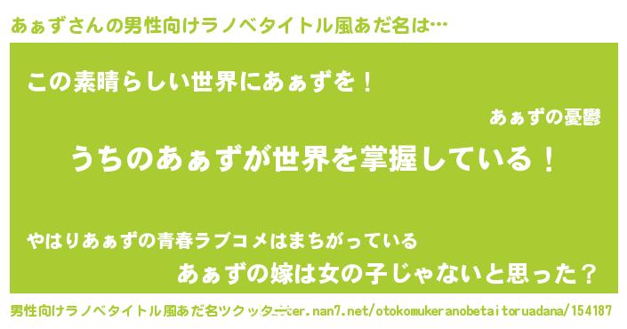 | 胡散臭い通販商品みたいなあだ名 | 『あなたにだけ特別に提供する限定10本のレアな日本酒…その名も「あぁず」』 |