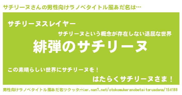 | ヒーロー風カッコイイあだ名 | 『ネオサチリーヌ』『仮面サチダー』 |