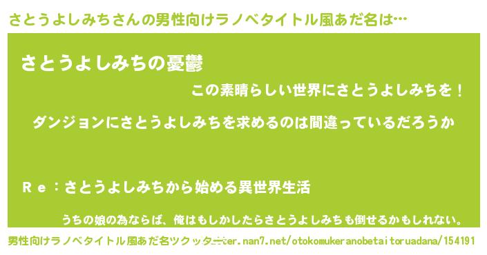 | 欧米人風あだ名 | 『ウサインさとうよしみち』 |