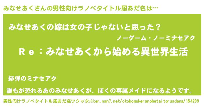 | 女子向けラノベタイトル風あだ名 | 『みなせあくストレイドッグス』 |
