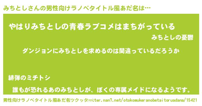 | 女子向けラノベタイトル風あだ名 | 『みちとしは平凡を望む』 |