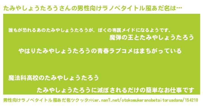 | ファンタジー風あだ名 | 『エターナルタミヤショウタロウー』 |