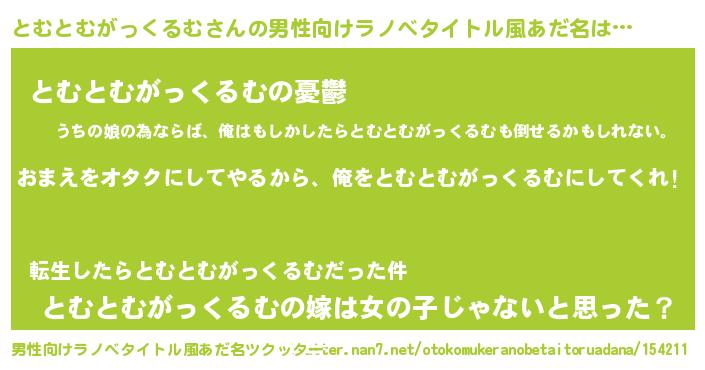 | 女子向けラノベタイトル風あだ名 | 『とむとむがっくるむ夫妻のなれそめ』 |