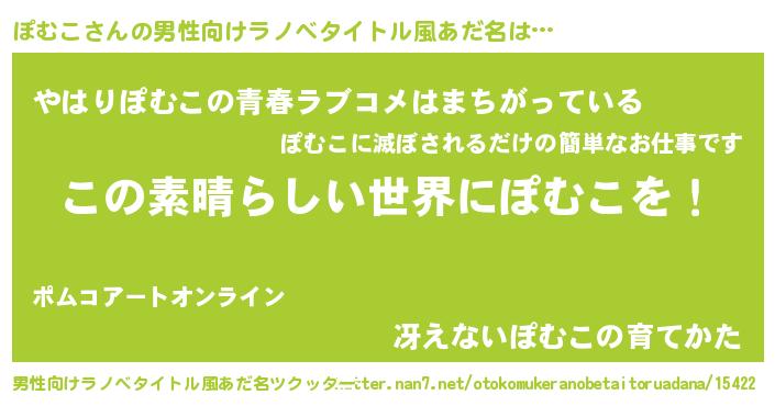 | 女子向けラノベタイトル風あだ名 | 『悪役ぽむこに転生したようですが、知った事ではありません』 |