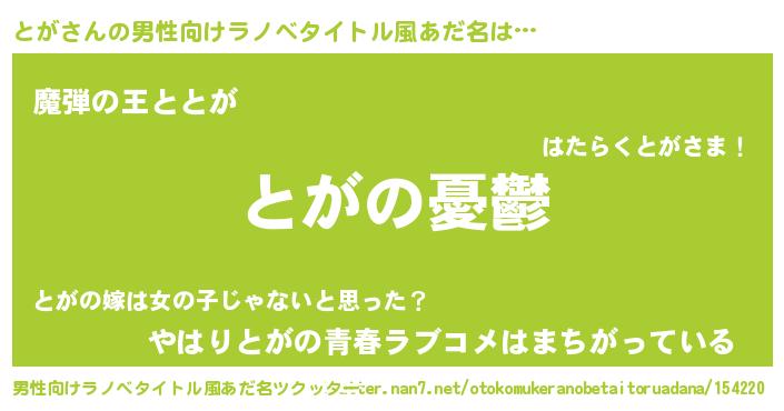 | 胡散臭い通販商品みたいなあだ名 | 『必ず成功する水晶球…その名も「とが」』 |