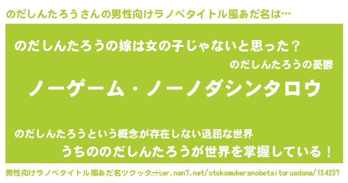 | 女子向けラノベタイトル風あだ名 | 『死神のだしんたろうの再婚』 |