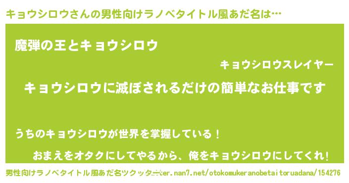 | 意味不明あだ名 | 『住所不定無職キョウシロウ(6歳)』 |
