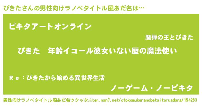 | 胡散臭い通販商品みたいなあだ名 | 『億万長者になれる水晶球…その名も「ぴきた」』 |