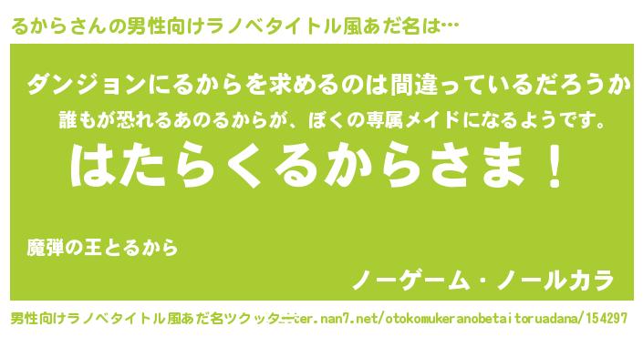 | ヒーロー風カッコイイあだ名 | 『魔戒騎士ルカ』『正義の使者るから』 |