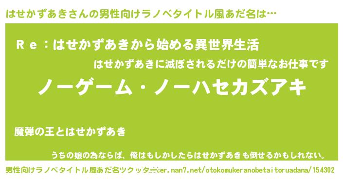 | 伝説のあだ名 | 『救世主となる占い師はせかずあき』 |