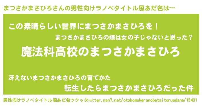 | 女子向けラノベタイトル風あだ名 | 『まつさかまさひろなんてお断りですっ。』 |