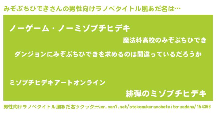 | 女子向けラノベタイトル風あだ名 | 『みぞぶちひできの卵を拾いまして』 |