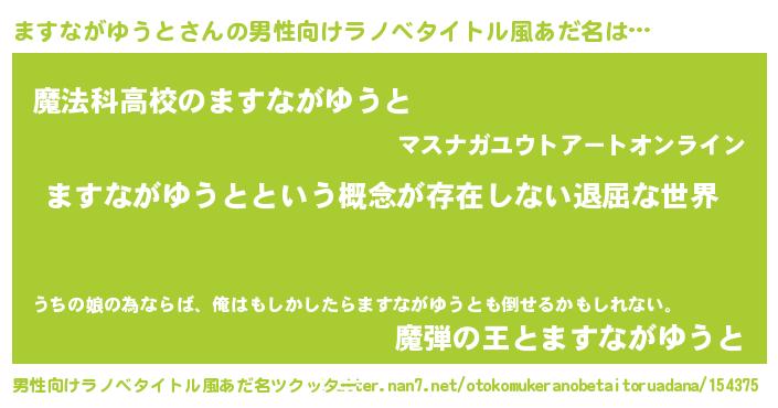 | 胡散臭い通販商品みたいなあだ名 | 『来世でも幸せになれる健康食品…その名も「ますながゆうと」』 |