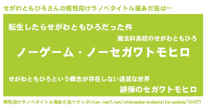 | 女子向けラノベタイトル風あだ名 | 『せがわともひろ恋絵巻』 |
