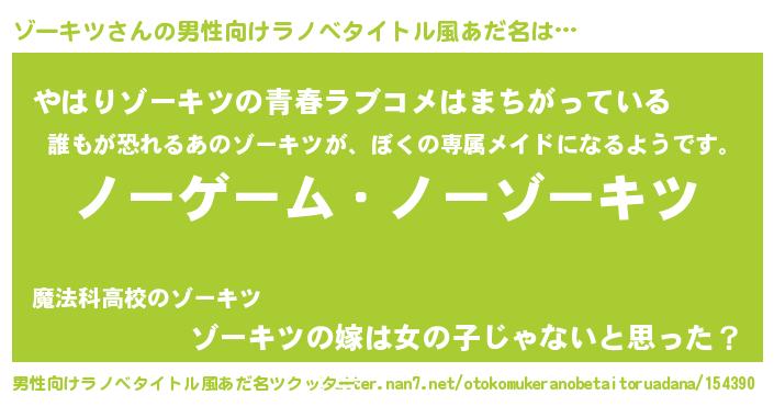 | 女子向けラノベタイトル風あだ名 | 『死神ゾーキツの再婚』 |