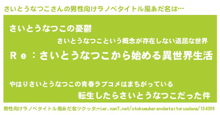 | 女子向けラノベタイトル風あだ名 | 『さいとうなつこストレイドッグス』 |