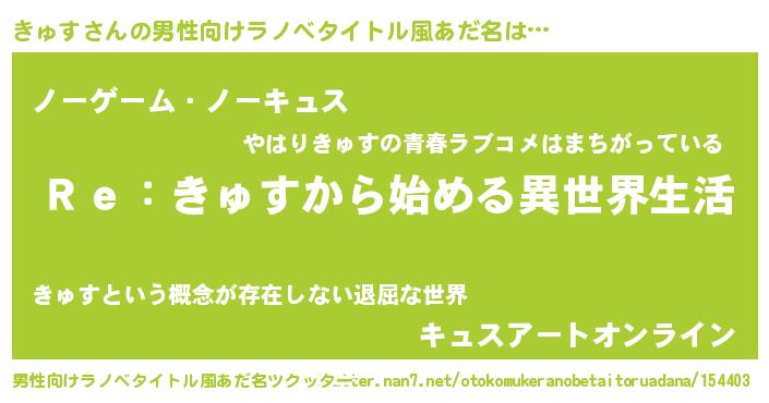 | 女子向けラノベタイトル風あだ名 | 『きゅすストレイドッグス』 |