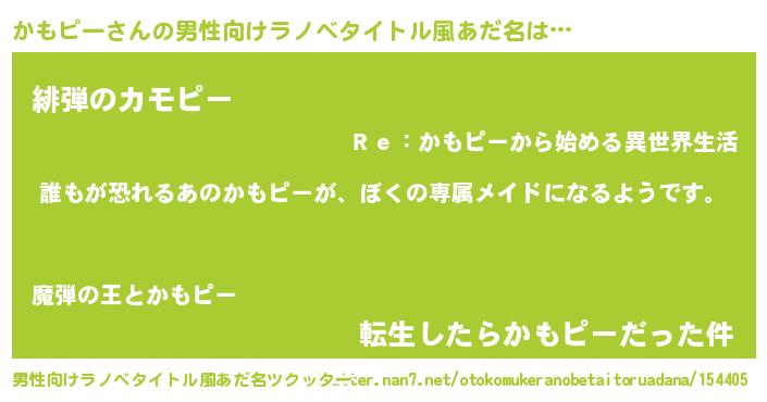 | ヘコむあだ名 | 『かもピー(笑)』『かももー』 |
